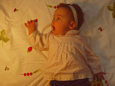 my daughters new eclectic nursery; filled with reds, yellows, turquoises ...and cute things.